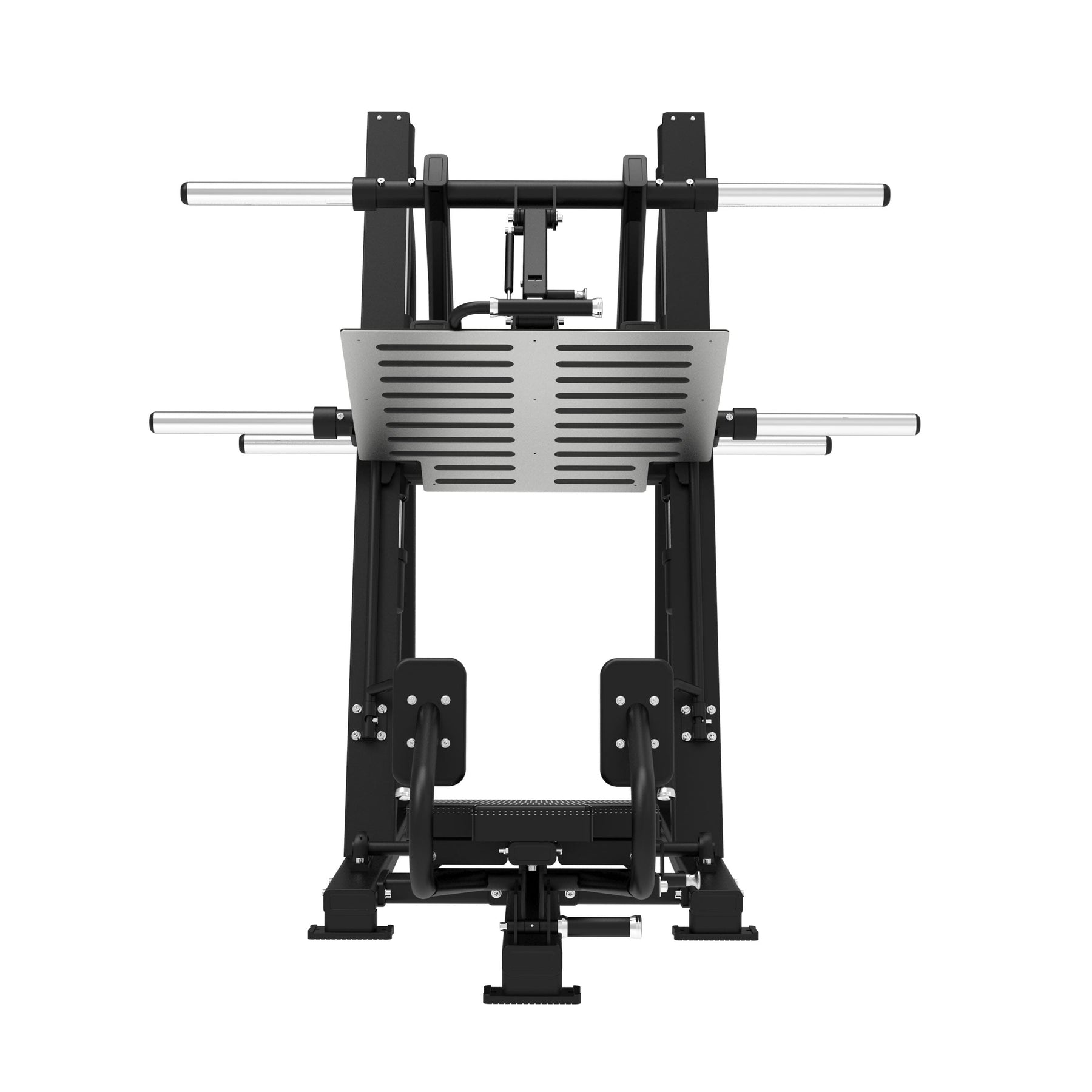 Realizzata con struttura in acciaio rinforzato a doppio tubo (50×100 mm e 40×80 mm, 2,5 mm di spessore), garantisce una stabilità totale anche sotto carichi intensi. La sua piattaforma ampia e antiscivolo offre una base solida per ogni tipo di utente, mentre lo schienale ergonomico e il sedile imbottito assicurano una posizione comoda e allineata durante tutto il movimento.